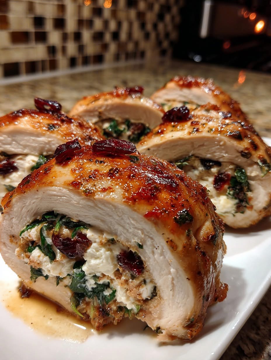 🎄 Rollitos de Pollo Navideños Rellenos de Queso, Espinaca y Arándanos
