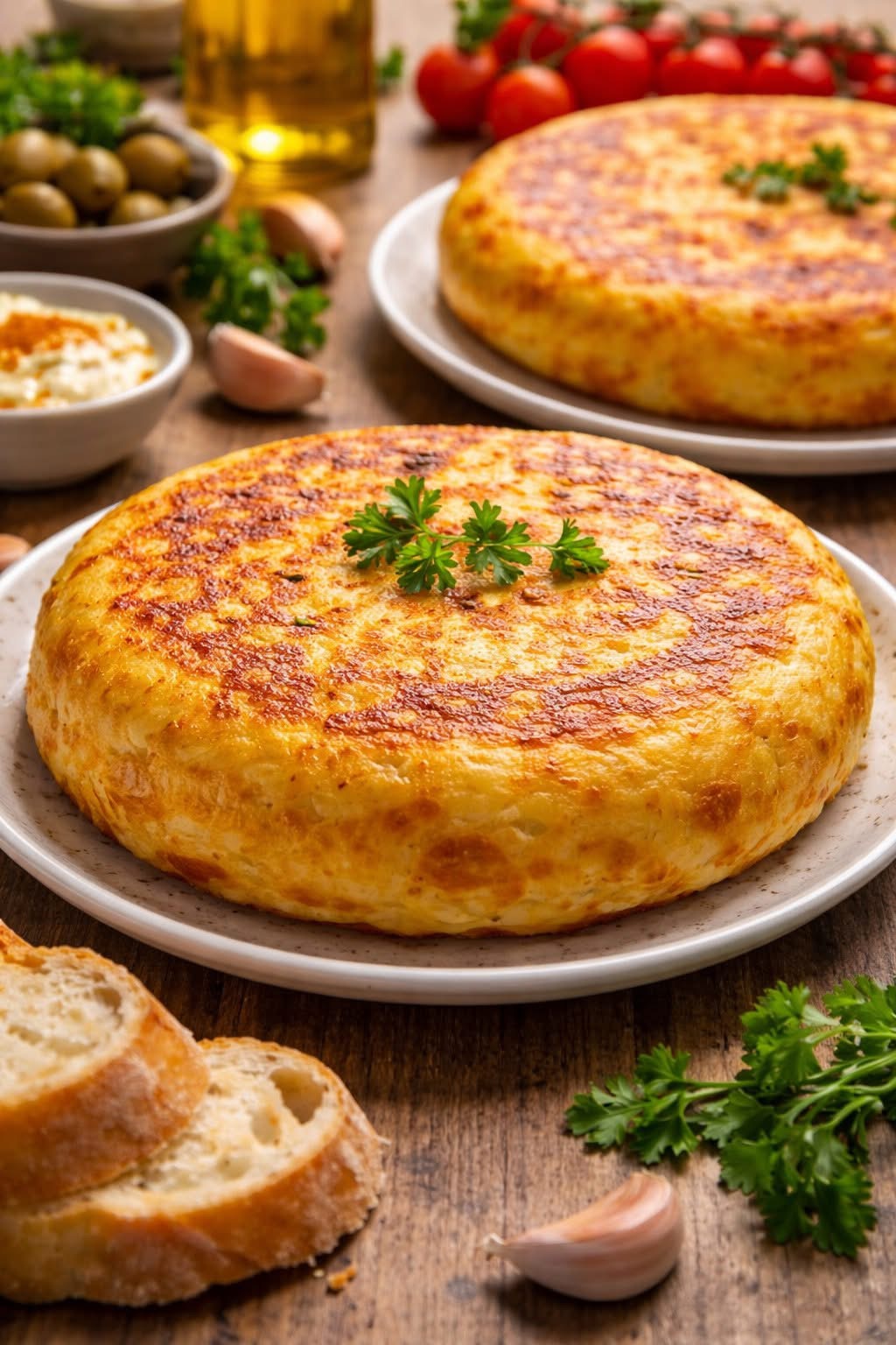 La tortilla española esponjosa es uno de los platos más emblemáticos de la cocina tradicional. Con una textura suave, aireada y jugosa, esta versión destaca por su volumen y ligereza, sin perder el sabor clásico de patata, huevo y aceite de oliva.